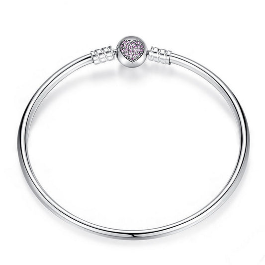 PAHALA 925 Sterling Silver Romantic Love Pink Infinity Girlfriend Crystals Bracelet Bangle