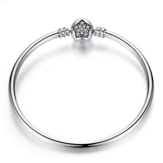 PAHALA 925 Sterling Silver Pave Star with Crystals Snake Chain Bracelet Bangle