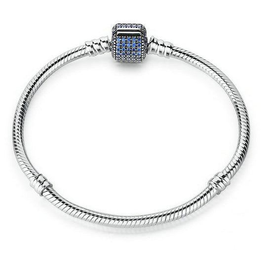 PAHALA 925 Sterling Silver Blue Crystals Snake Chain Bracelet Bangle
