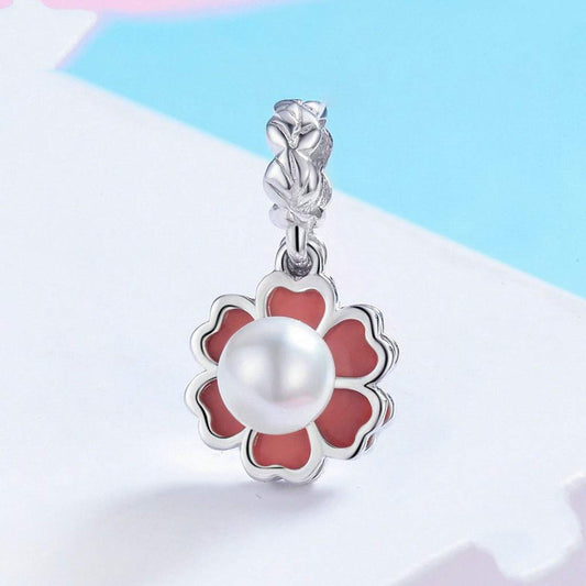 PAHALA 925 Strling Silver Love Clover Flower Pink Enamel Charm Bead
