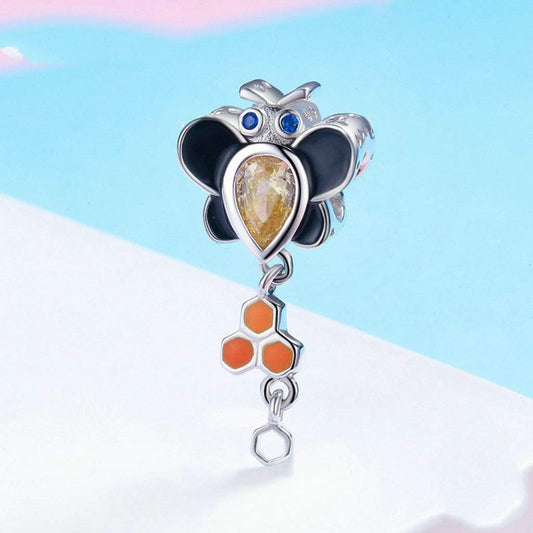 PAHALA 925 Strling Silver Enamel Insect Trendy Bee with Crystal Pendant Charms Beads