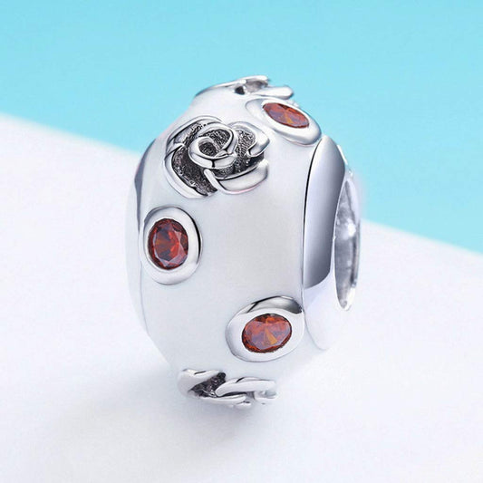 PAHALA 925 Strling Silver Rose Flower Orange Crystals Charm