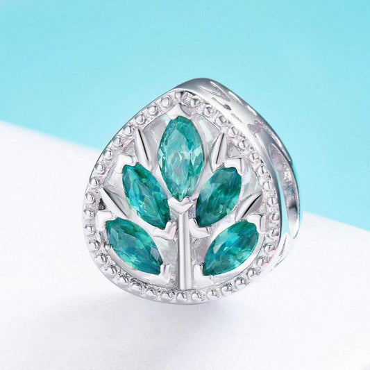 PAHALA 925 Strling Silver Tree Leaves Green Crystals Charm
