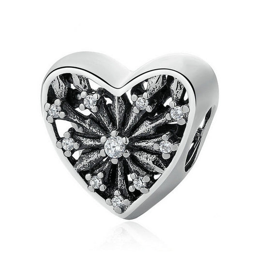PAHALA 925 Strling Silver Dazzling Heart Shape with Crystals Charm Bead
