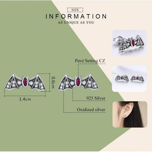 PAHALA 925 Sterling Silver Mysterious Bat Dazzling Stud Earrings