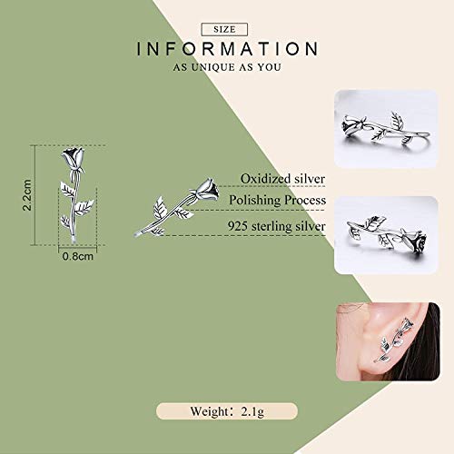 PAHALA 925 Sterling Silver Rose Flower Stud Earrings