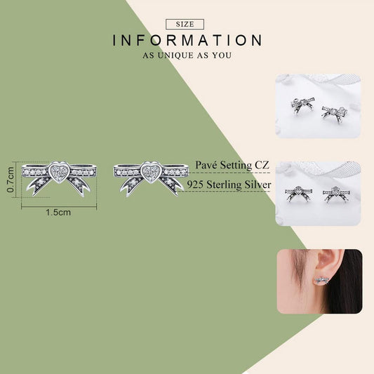 PAHALA 925 Sterling Silver Sweet Dazzling Bowknot Crystals Stud Earrings