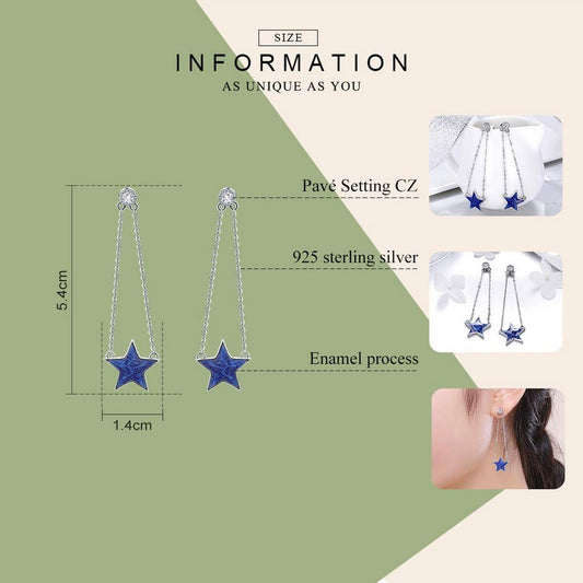 PAHALA 925 Sterling Silver Sparkling Star Chain Dangle Drop Earrings