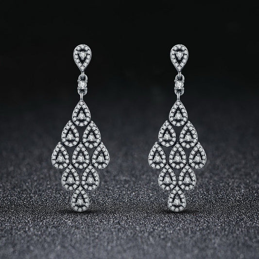 PAHALA 925 Sterling Silver Cascading Glamour With Crystals Long Drop Earrings