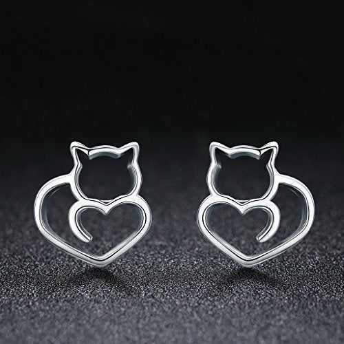 PAHALA 925 Sterling Silver Cute Cat Stud Earrings