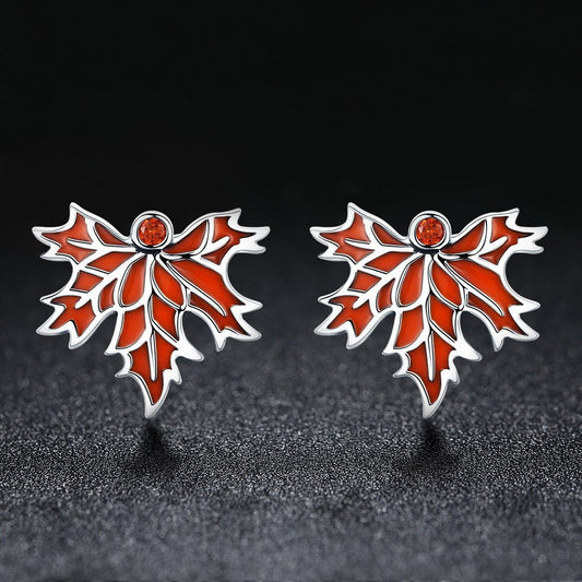 PAHALA 925 Sterling Silver Red Enamel Autumn Maple Tree Stud Earrings