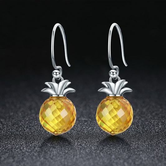 PAHALA 925 Sterling Silver Pineapple Crystal Hanging Drop Earrings