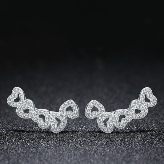 PAHALA 925 Sterling Silver Stackable Heart Luminous With Crystals Long Tassel Earrings