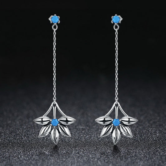 PAHALA 925 Sterling Silver Vintage Flower Blue Crystals Long Tassel Earrings