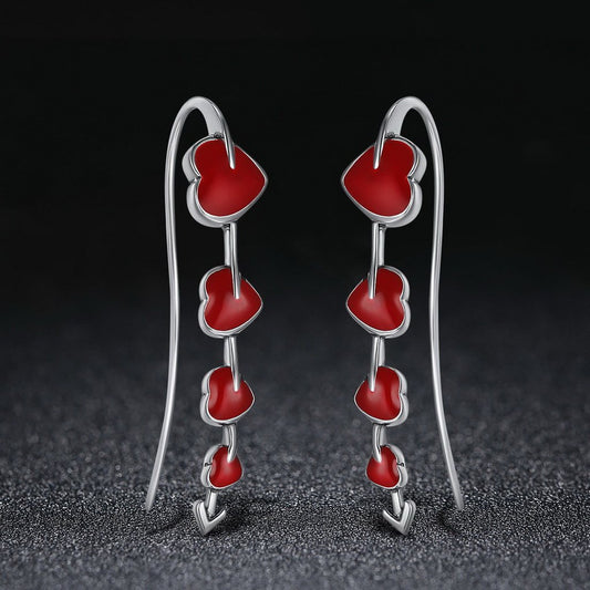 PAHALA 925 Sterling Silver Fall In Love Blooming Heart Red Enamel Long Drop Earrings