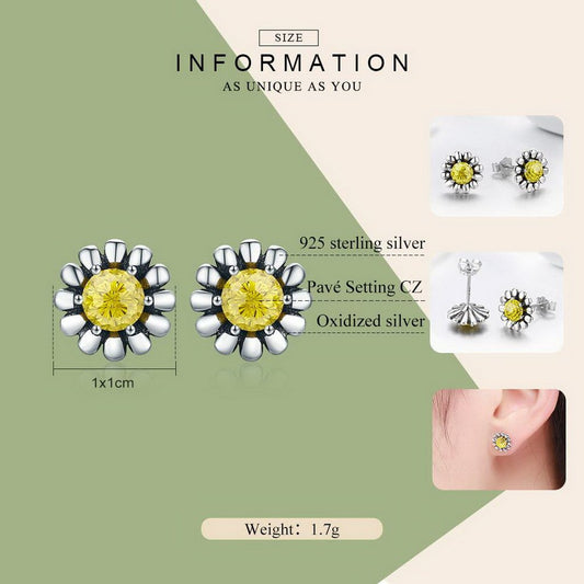 PAHALA 925 Sterling Silver Yellow Daisy Flower With Crystals Stud Earrings