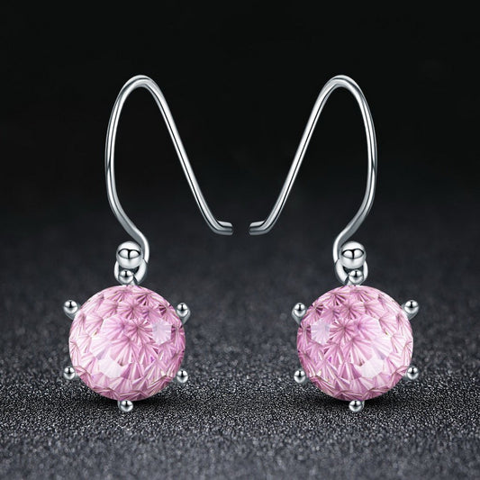 PAHALA 925 Sterling Silver Round Pink Sparkling With Pink Crystal Stud Earrings