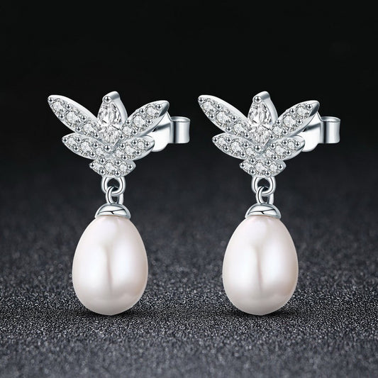 PAHALA 925 Sterling Silver Vintage Freshwater Pearl Hanging Crystals Drop Earrings