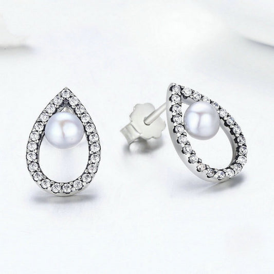 PAHALA 925 Sterling Silver Romantic Glittering Droplet Tear With Crystals Stud Earrings