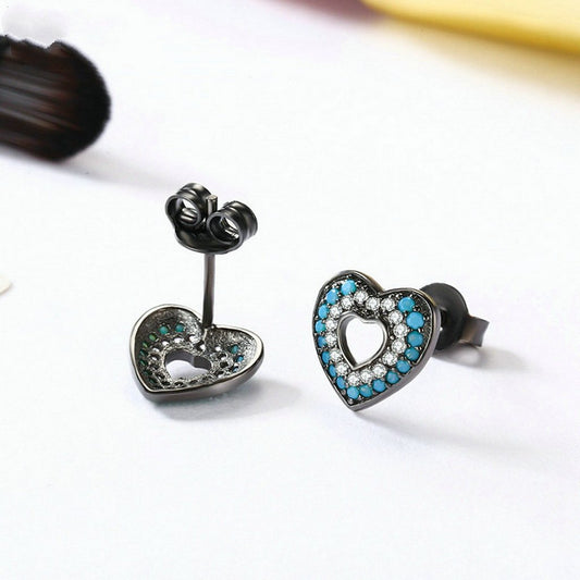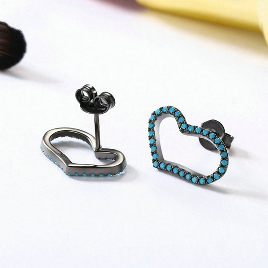 PAHALA 925 Sterling Silver Heart With Blue Crystals Party Wedding Stud Earrings