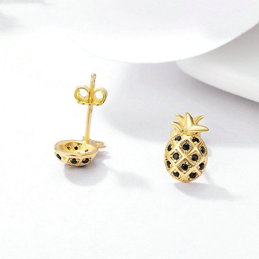 PAHALA 925 Sterling Pineapple With Crystals Party Wedding Stud Earrings