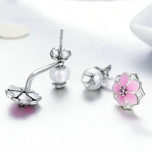 PAHALA 925 Sterling Silver Bloom Cerise Enamel Party Wedding Stud Earring