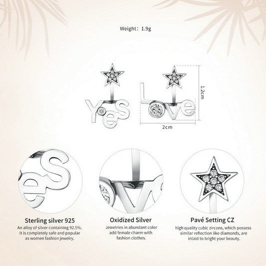 PAHALA 925 Sterling Yes I Love With Crystals Party Wedding Stud Earrings
