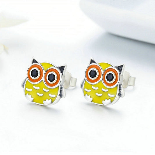 PAHALA 925 Sterling Silver Enamel Cut Owl Party Wedding Stud Earrings