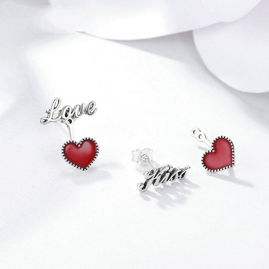 PAHALA 925 Sterling Red Heart Love Kiss Party Wedding Stud Earrings