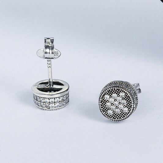 PAHALA 925 Sterling Silver Mosaic Round With Crystals Party Wedding Stud Earrings