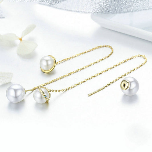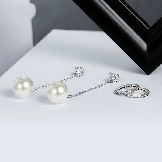 PAHALA 925 Sterling Silver Planet Freshwater Pearl With Crystals Party Wedding Long Drop Earrings