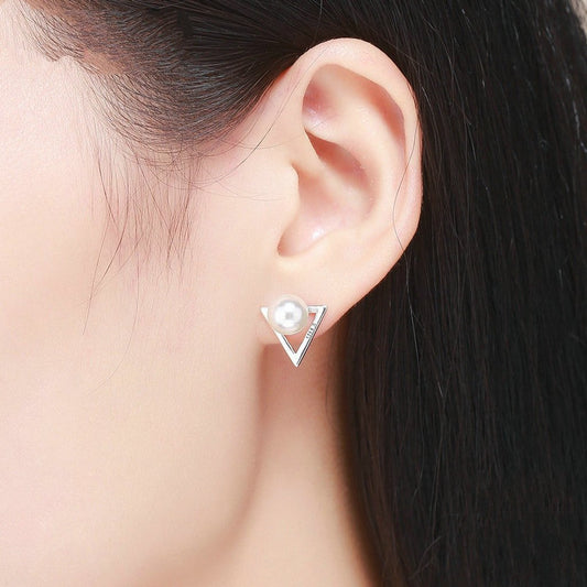 PAHALA 925 Sterling Triangle With Crystals Party Wedding Stud Earrings