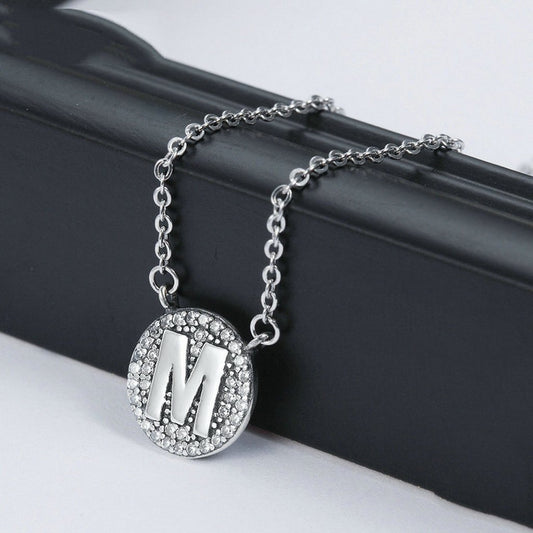 PAHALA 925 Sterling Silver Unique Letter M with Crystals Pendant Necklace