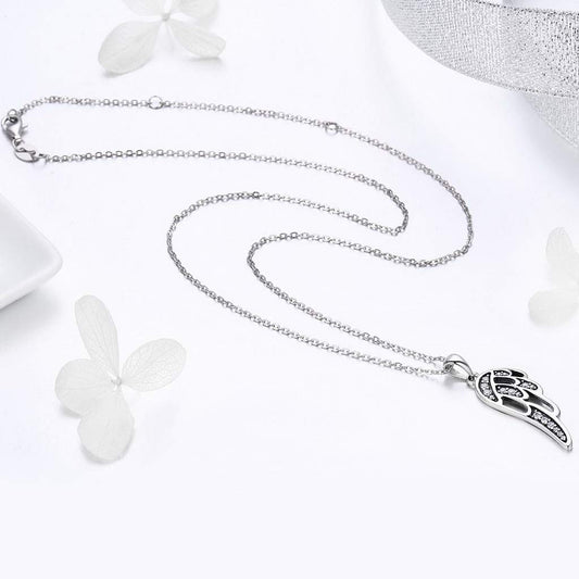 PAHALA 925 Sterling Silver Fairy Wings Feather Crystals Pendant Necklace
