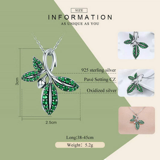 PAHALA 925 Sterling Silver Summer Tree Leaves Crystals Pendant Necklace