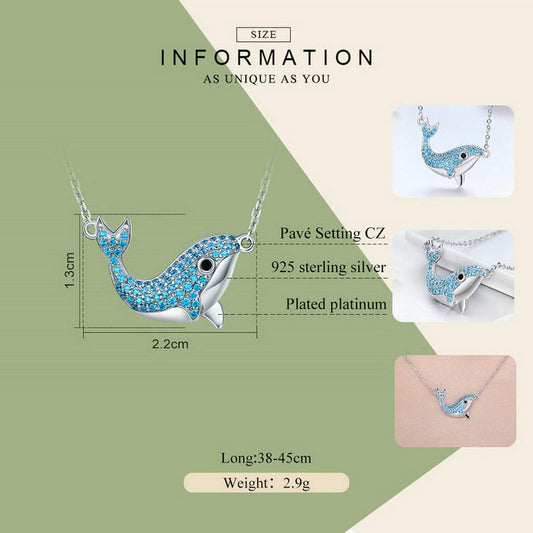 PAHALA 925 Sterling Silver Cute Blue Whale Crystals Pendant Necklace
