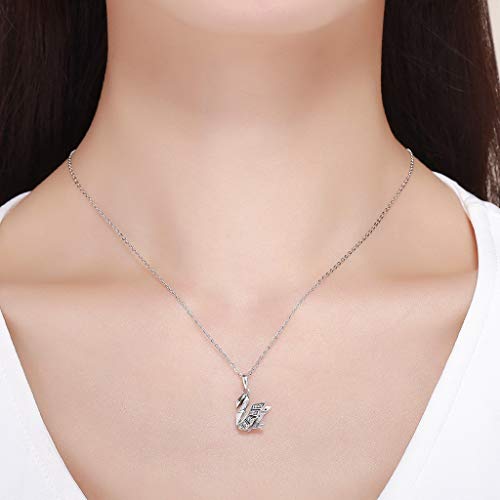 PAHALA 925 Sterling Silver Cute Swan Crystals Pendant Necklace