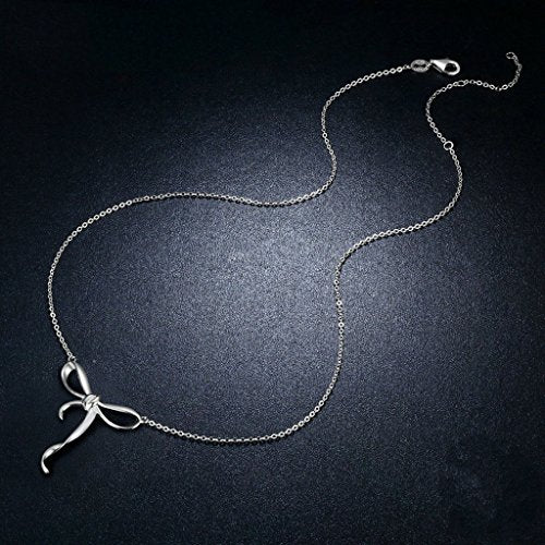 PAHALA 925 Sterling Silver Authentic Bowknot Clear CZ Pendant Necklace