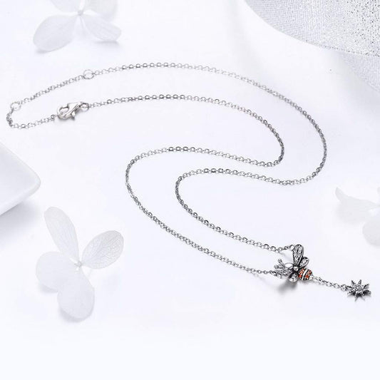 PAHALA 925 Sterling Silver Cute Fashion Bee Crystals Pendant Necklace
