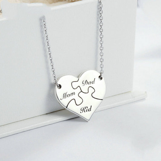 PAHALA 925 Sterling Silver I Love Family Mom Dad Kid Clear CZ Pendant Necklace