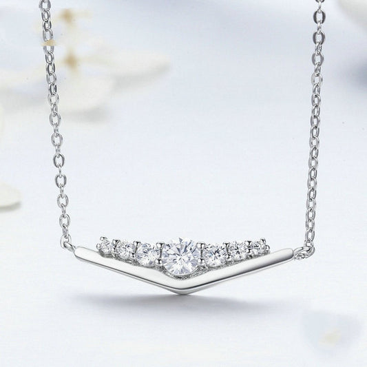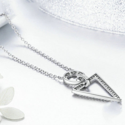PAHALA 925 Sterling Silver Triangle with Crystals Clear CZ Pendant Necklace