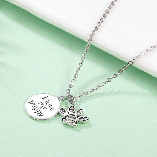 PAHALA 925 Sterling Silver Love My Doggy Footprints with Crystals Pendant Necklace