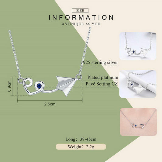 PAHALA 925 Sterling Silver Plane with Heart Pendant Necklace