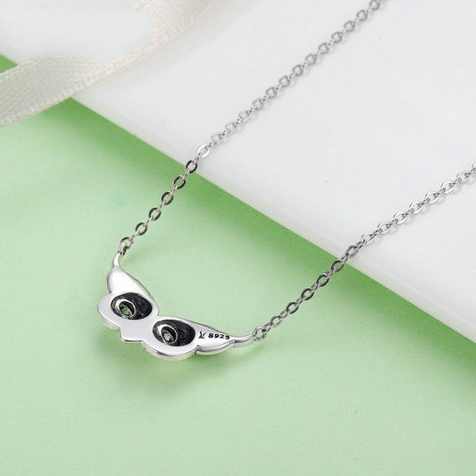 PAHALA 925 Sterling Silver Lovely OWL Face with Crystals Pendant Necklace