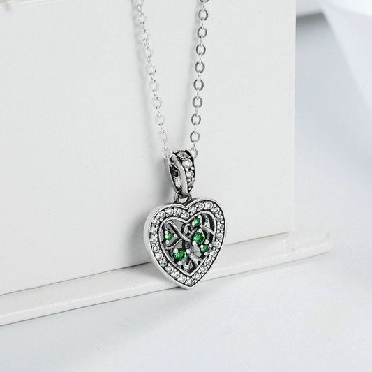 PAHALA 925 Sterling Silver Rhyme of Tree Heart with Crystals Clear CZ Pendant Necklace