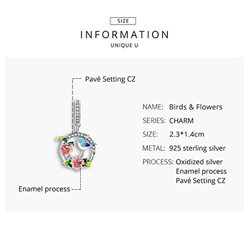 PAHALA 925 Sterling Silver Colorful Birds Flowers Leaves CZ Pendant Spring Charm Bead (Colorful Birds Flowers)