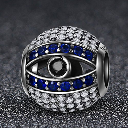 PAHALA 925 Strling Silver Blue Eye with Crystals Charm Bead Fit Bracelets