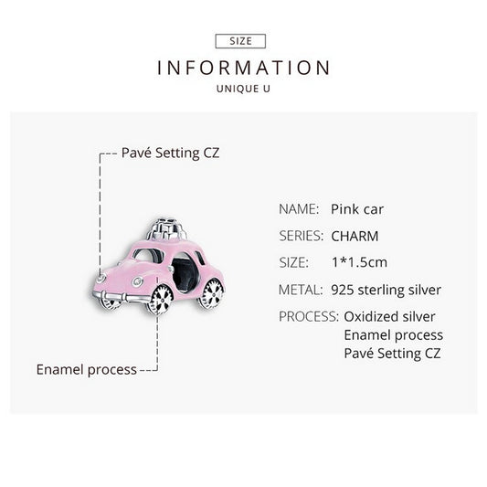 PAHALA 925 Sterling Silver Pink Car With Crystals Charm Bead