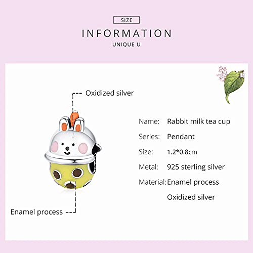 PAHALA 925 Sterling Silver Enamel Rabbit Milk Tea Cup Summer Bubble Tea Charm Bead