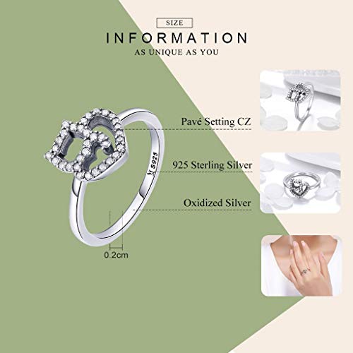 PAHALA 925 Strling Silver Red Heart Crystal Finger Weeding Party Ring